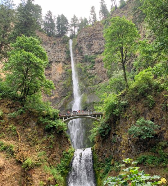 During the summer break, my family and I went to Canada. Our first ride was driving our gear all the way to Portland, Oregon. We shortly went to visit the Multnomah Falls. It was located in the Columbia River Gorge east of Portland. A historic footbridge, the Benson Bridge, offers tourists an upper and lower cascade view, making the site one of Oregon’s well known natural attractions.